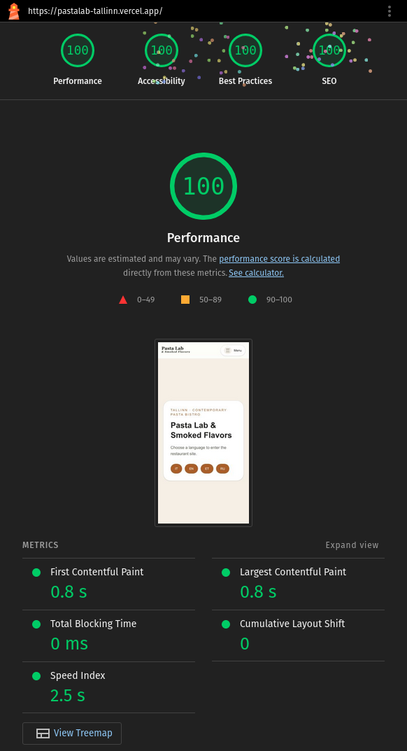 Lighthouse score: 100 / 100 / 100 / 100